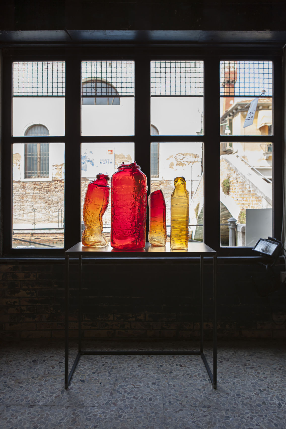 With the ethereal volumes of Laura De Santillana, the achromatic minimalism of Silvano Rubino and the impressive crystal and dichroic glass mortars by Michele Burato, the artists’ creative thoughts were translated into matter by Murano masters. The history of glass design is magnificently represented by the Veronese vases that Cleto Munari has made in collaboration with Massimiliano Fuksas, Mimmo Paladino, Matteo Thun, Richard Meier, Tobia Scarpa, and Mario Botta. There will be also other types of glass: for example the famous industrial glass Ghost chair by Cini Boeri and the borosilicate glass bonsai created by Simone Crestani.