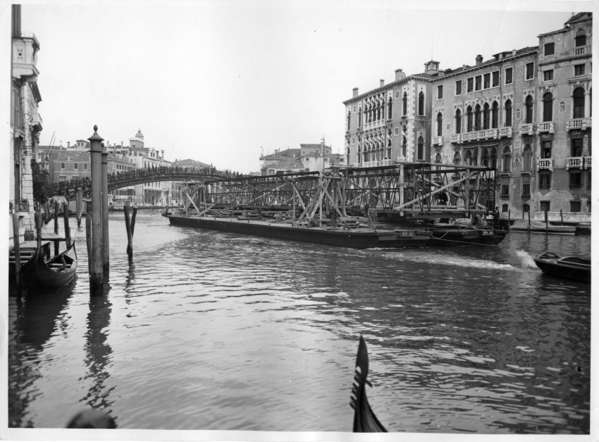 When maintenance expenses began to become substantial, a competition was held to give the Accademia Bridge a new profile. Since 1932 several architects presented innovative solutions, but the winning design of the competition – a stone arch bridge designed by architect Duilio Torres and engineer Ottorino Bisazza – never came to life. Just a month before the results of the competition came out, Eugenio Miozzi erected a temporary version of the Accademia Bridge, a larch wood structure intended to last until the construction of the new design, which due to the war was never completed.