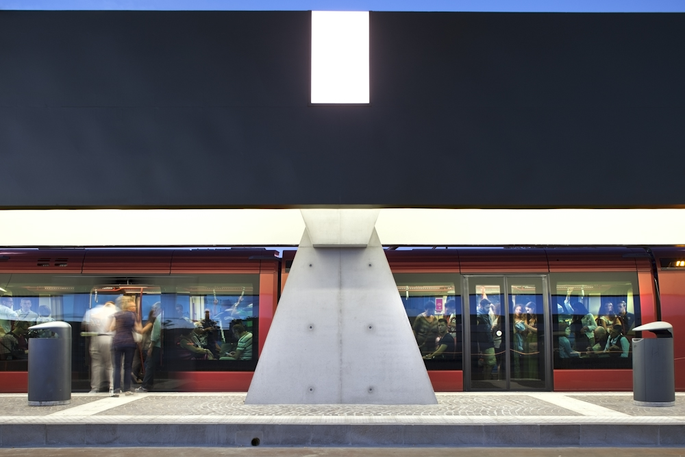 At night, the shelter turns into a suspended light area that draws the eye and guides the commuters towards the tram. With this project, MAP studio won the Italian Architect Award in 2018.