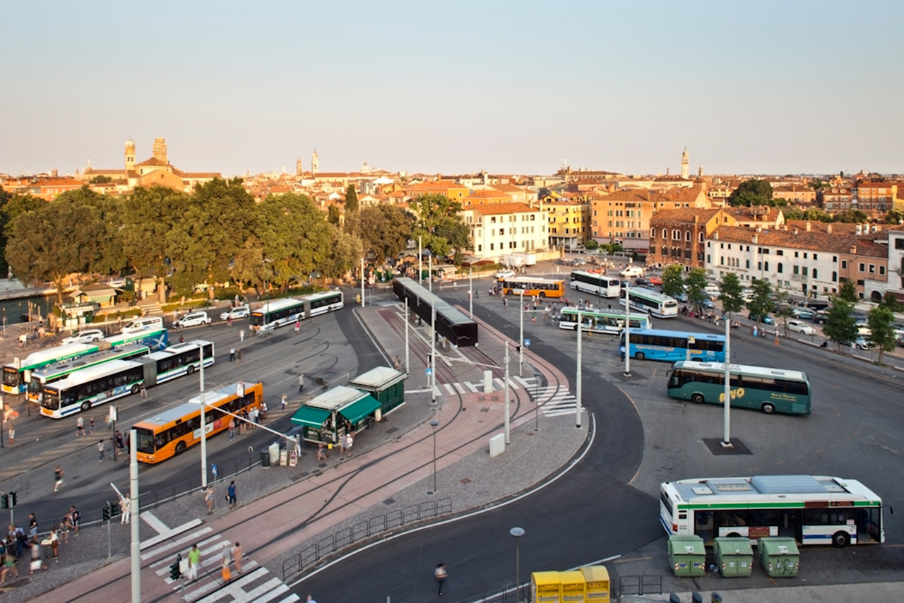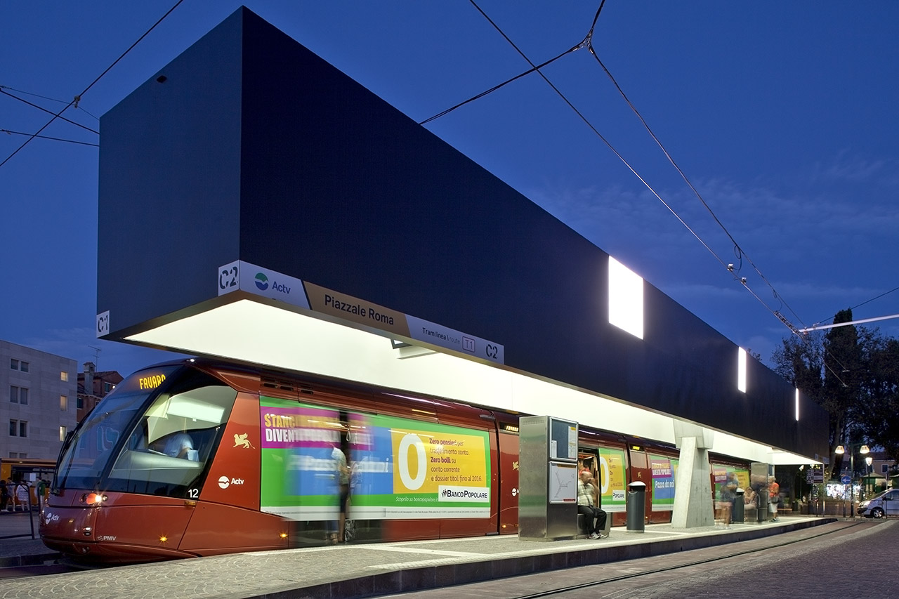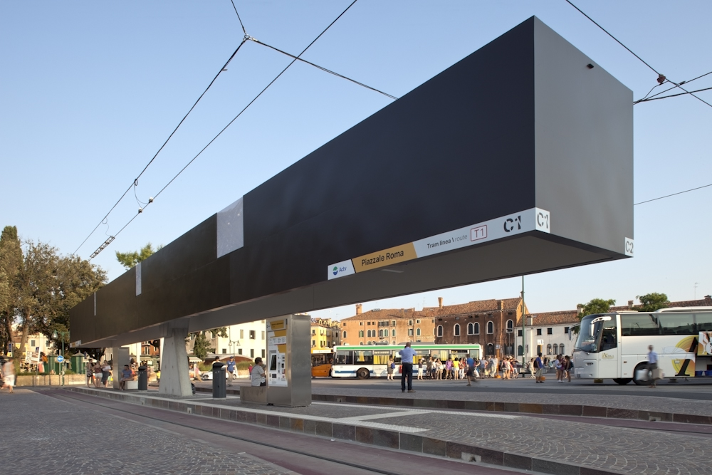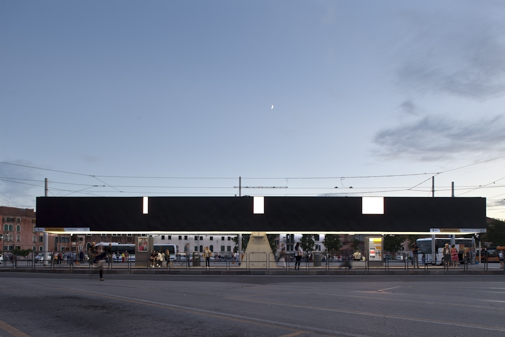 The canopy in Piazzale Roma is located in a transit area of Venice, which over the past decades has been the subject of various architectural competitions, mostly left on paper. For those arriving in Venice by tram, bus and car, the square is the first place to look out over the city.