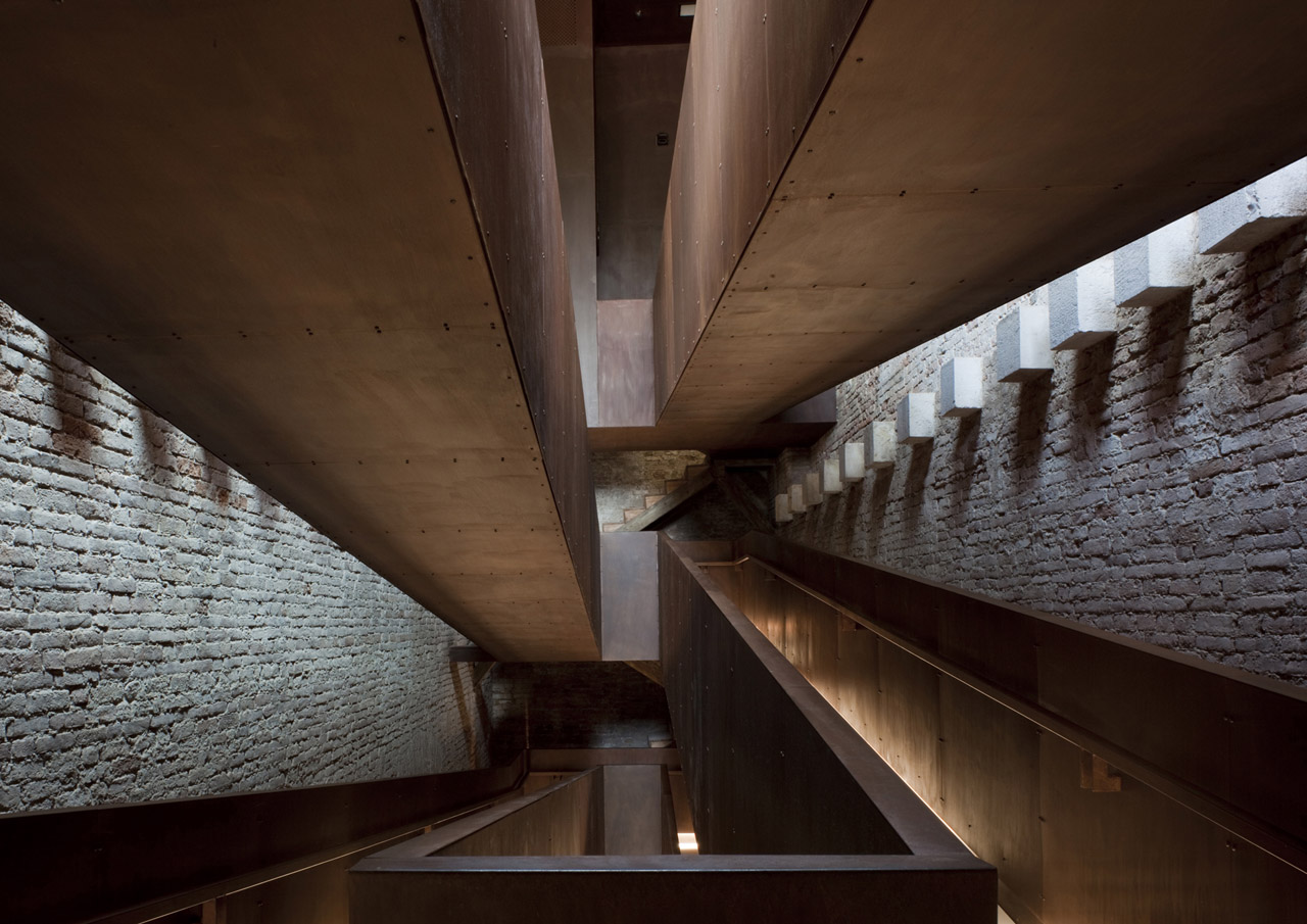 The project consisted of the renovation of a nineteenth century tower in the Arsenale of Venice, converted into a cultural center. The tower, which soon fell into disuse after construction, was restored with the idea of making the most of the internal spatiality of the building and is therefore divided into three sectors.