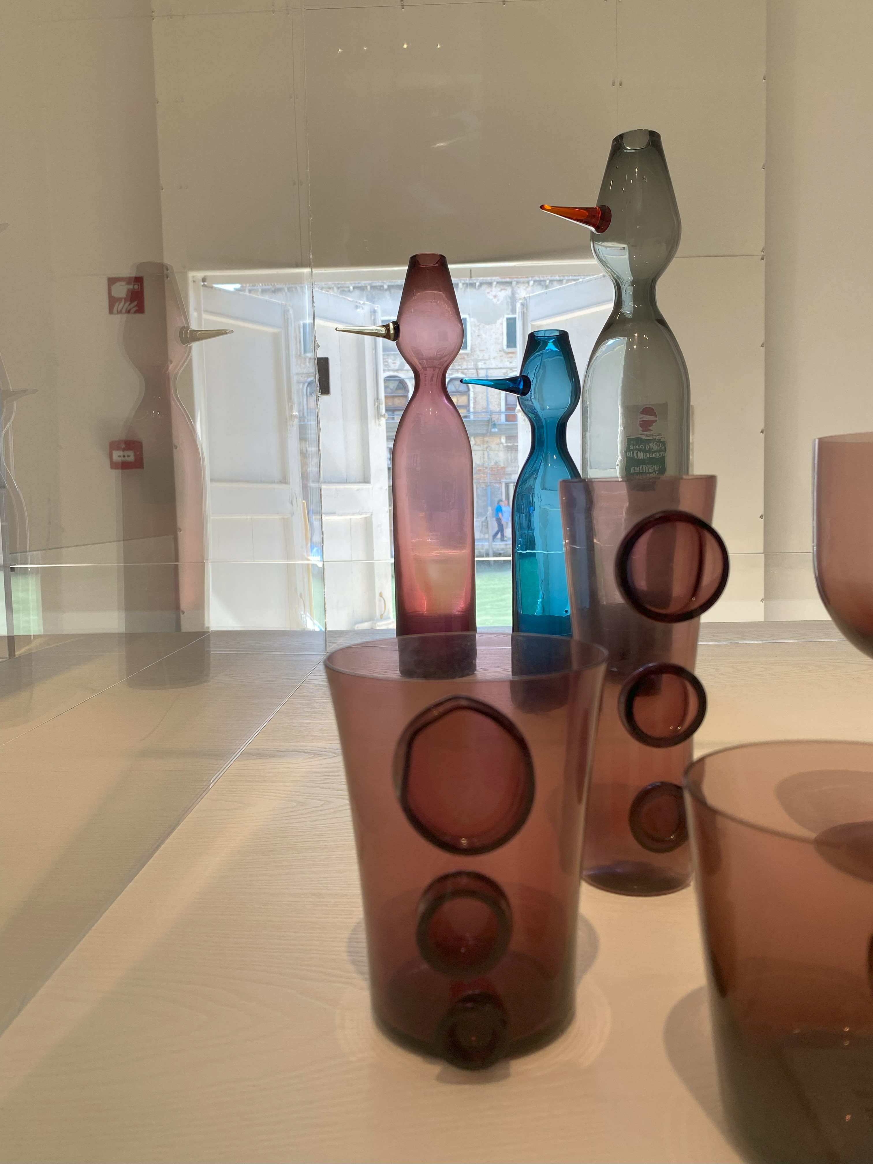 By the time you’ve walked alongside the timeline you’ll notice that the exhibit is not just a “trip down memory lane”, but there is a big section dedicated to more recent projects, iconic glasses, vases, cups, that are still being made to this day, and various collaborations with contemporary artists and designers such as Fabio Bortolani, Maria Grazia Rosin, Marco Zito, Matteo Zorzenoni.