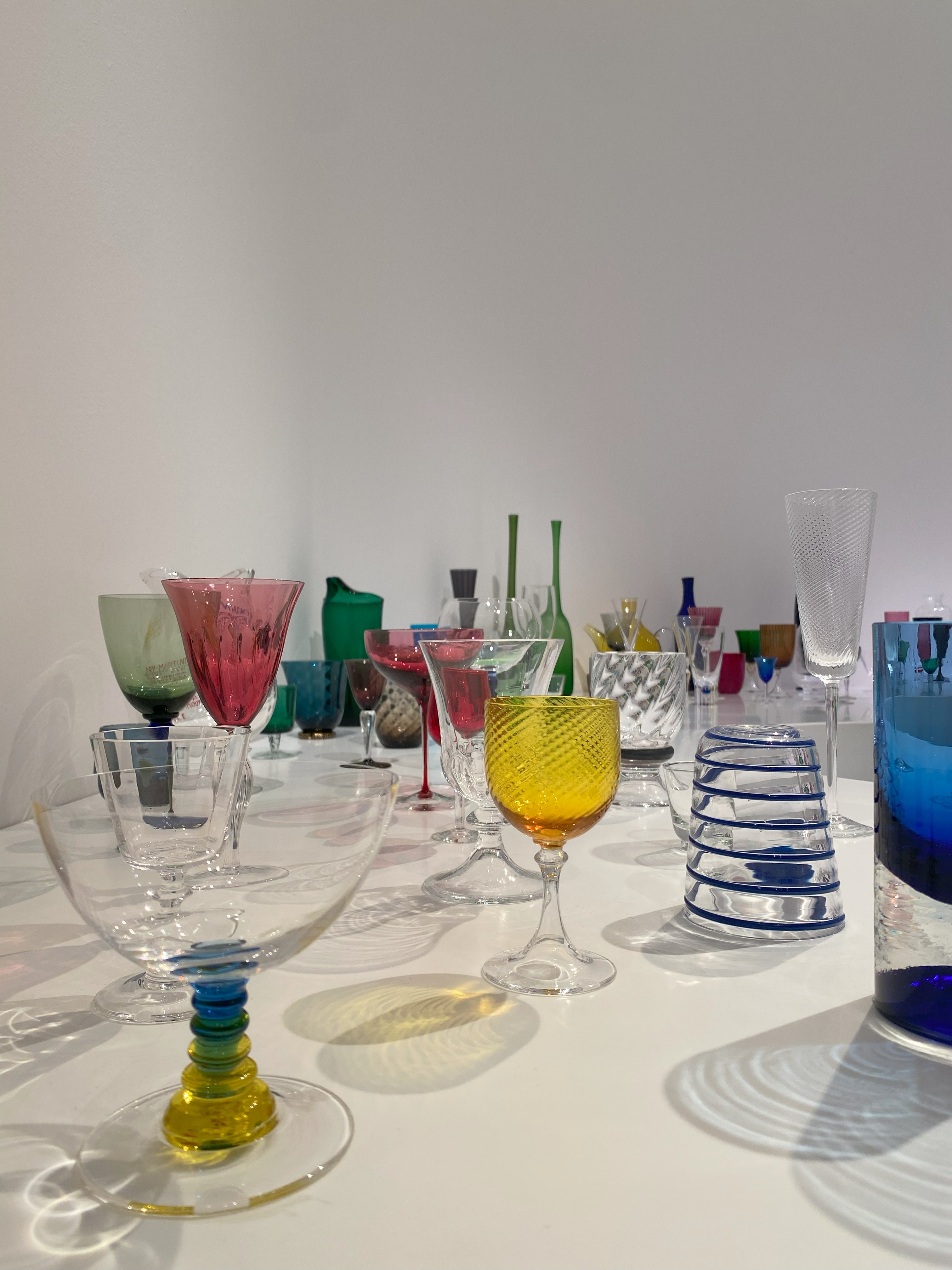 Entering the exhibition it’s like diving inside 100 years of experience in artistic glass making, sure enough, as you walk in the first room you are going to be surrounded by many iconic works, all different kinds of tableware but especially glasses, that make the room look like an incredibly colourful wave.
