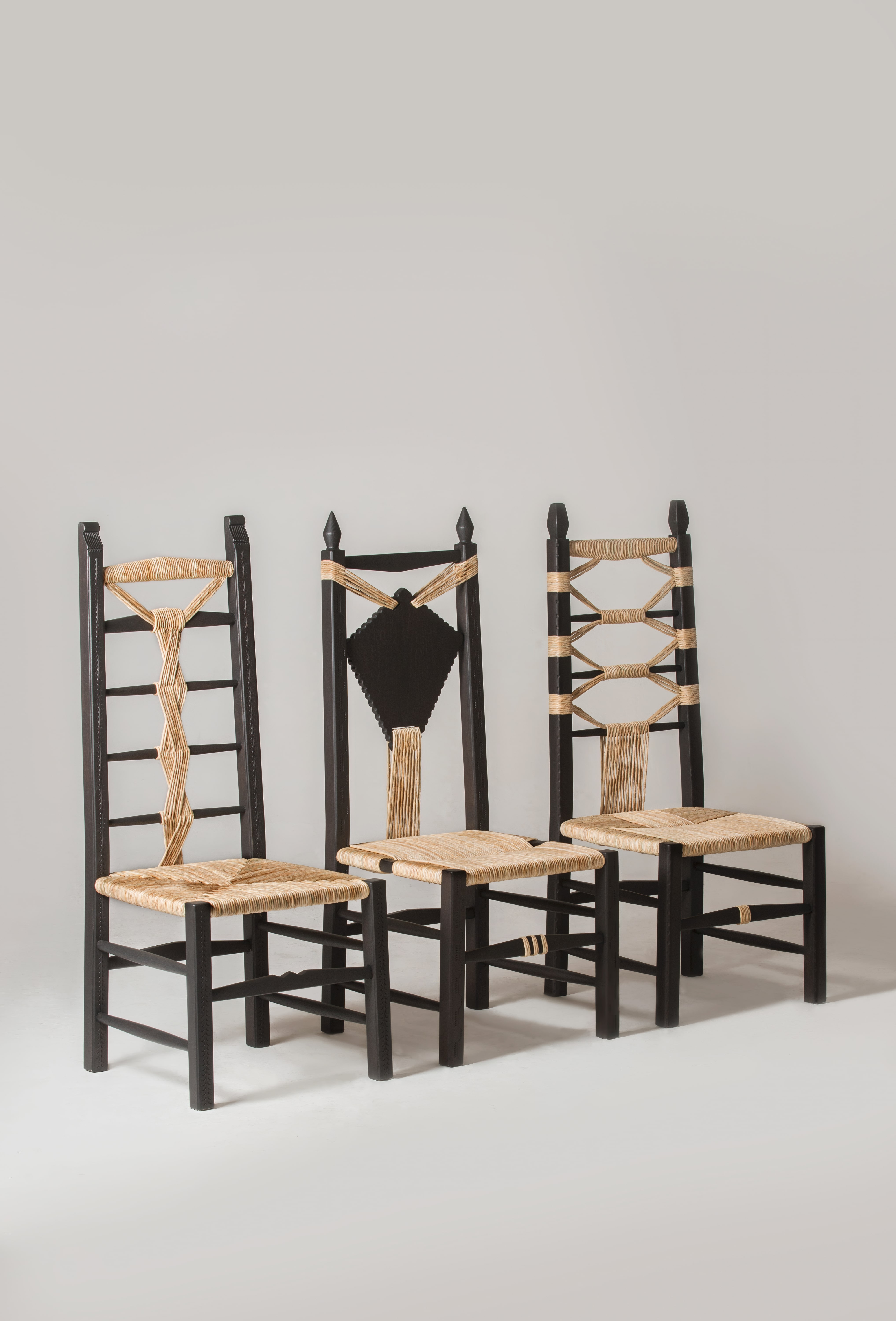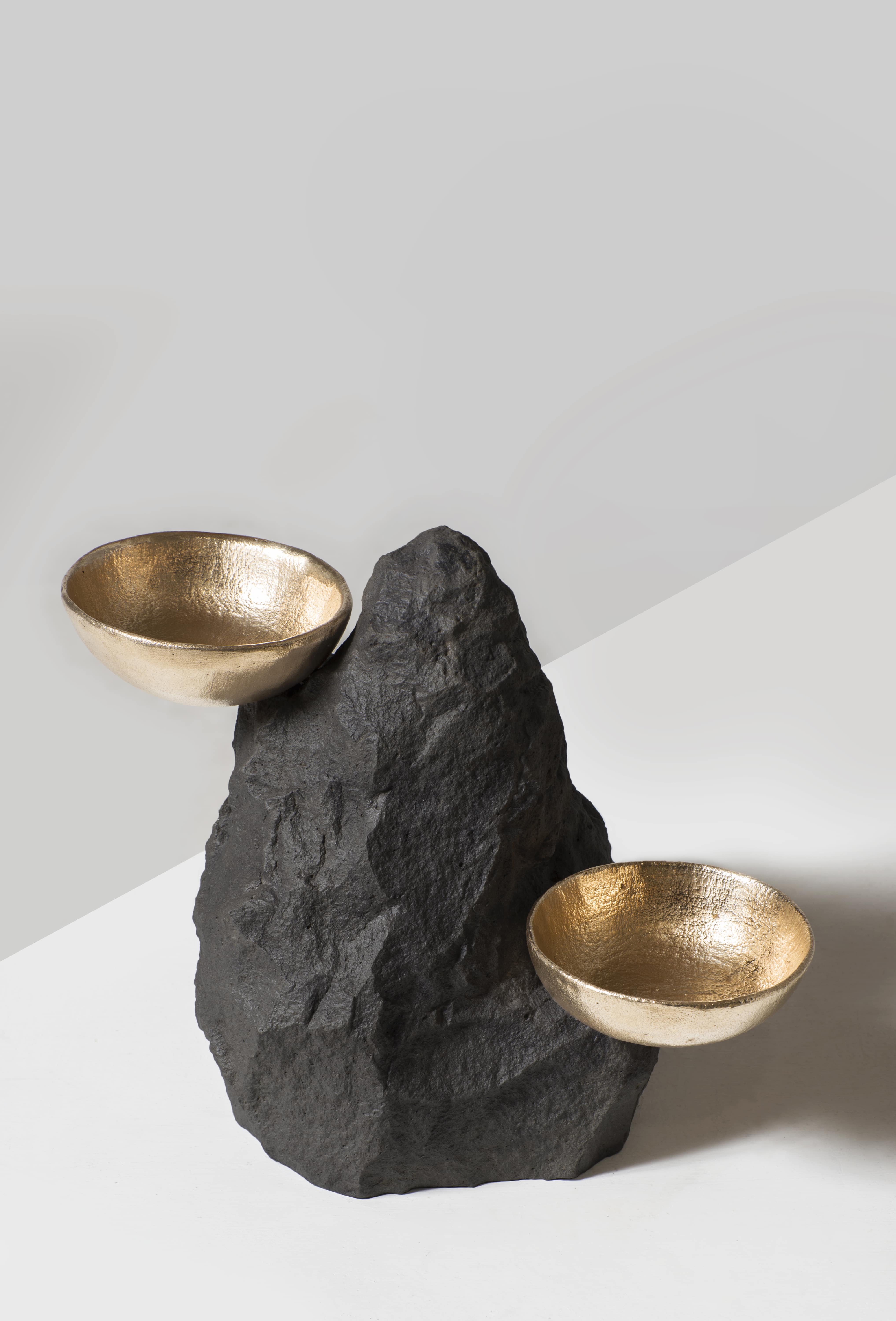 Maria Paola Piras, expert of techniques that come from the nuragic prehistory, takes inspiration from the shapes of the vases found on the island, to create her VASI JARA & SETTIU; Studiopepe’s PERDAS FITTAS celebrate the sacredness of Sardinian stone and the healing power of water: miniature mountains that refer to the majestic and mysterious nature of the island, on which small bronze vases are placed, casted into the art lab of Karmine Piras. While Chiara Andreatti creates together with the artisan Pierpaolo Mandis, LIA CHAIR, a reinterpretation of the typical scannu, the small wooden and straw chair present in Sardinian country houses, increasing its size to make it more comfortable and underline its social importance.