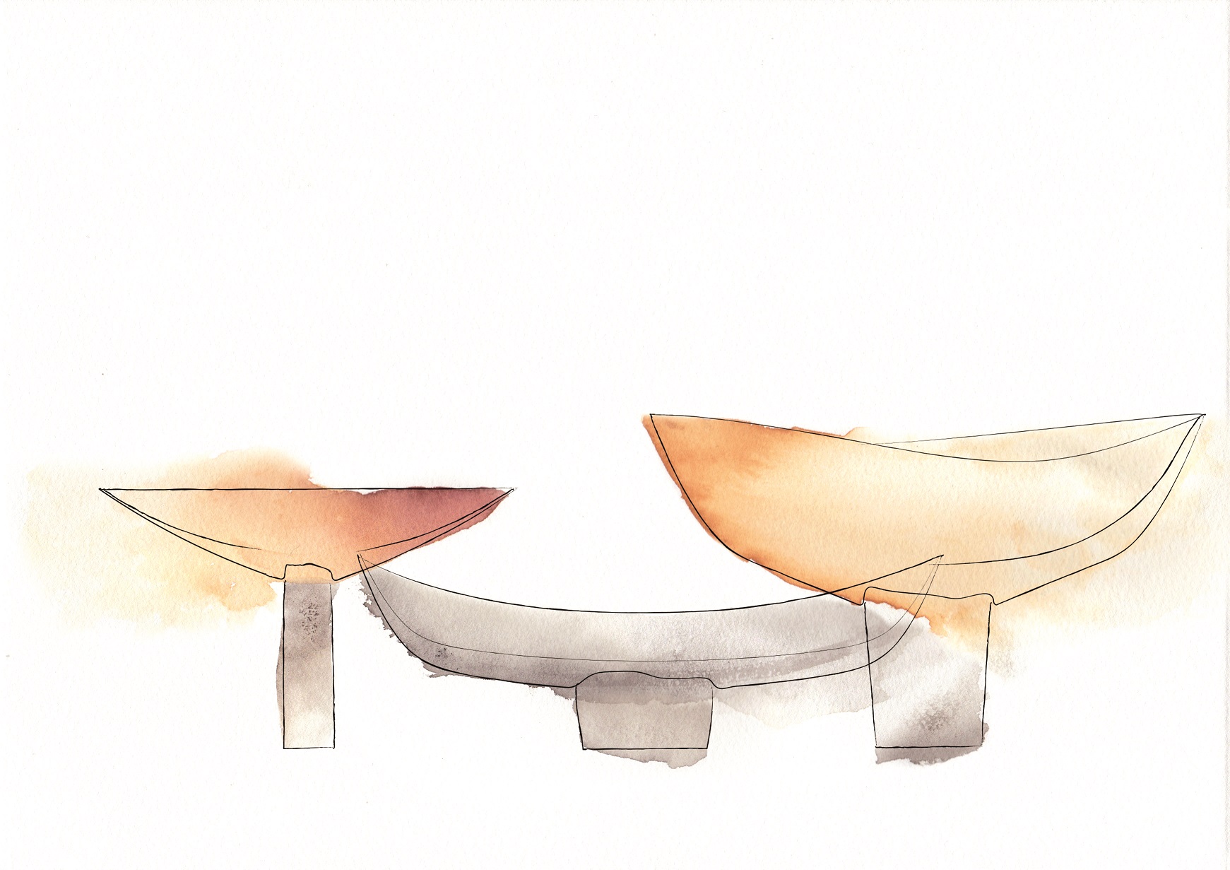 A further reference to the Venetian landscape is also embodied by Palafit, the work proposed by the duo GamFratesi (the Danish architect Stine Gam and the Italian architect Enrico Fratesi), who placed wide forms of blown glass on a wooden pedestal obtained from real “bricole”, the traditional poles that mark the waterways in and out the city.
