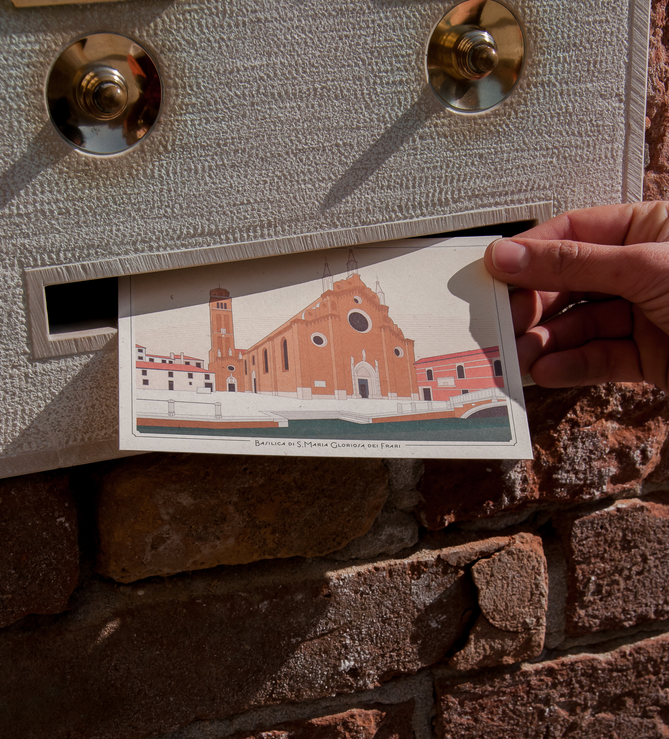 Their creative spirit gave life to the "Catalogo Veneziano - Chiese", (Venetian Catalogue - Churches), an inventory of 110 graphics cards that represent the churches layouts with their location in the city. This production was the starting point of a large collection of catalogues that includes shapes and conformations of Venetian bridges and squares.