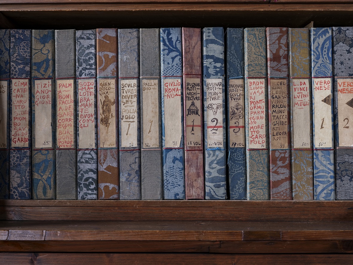 So here we are on the second floor, where the protagonists are the engravings, the studio-library, the experiments of lighting, photography, scenography and prints on fabrics.