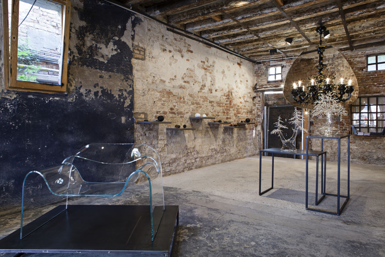 With the ethereal volumes of Laura De Santillana, the achromatic minimalism of Silvano Rubino and the impressive crystal and dichroic glass mortars by Michele Burato, the artists’ creative thoughts were translated into matter by Murano masters. The history of glass design is magnificently represented by the Veronese vases that Cleto Munari has made in collaboration with Massimiliano Fuksas, Mimmo Paladino, Matteo Thun, Richard Meier, Tobia Scarpa, and Mario Botta. There will be also other types of glass: for example the famous industrial glass Ghost chair by Cini Boeri and the borosilicate glass bonsai created by Simone Crestani.