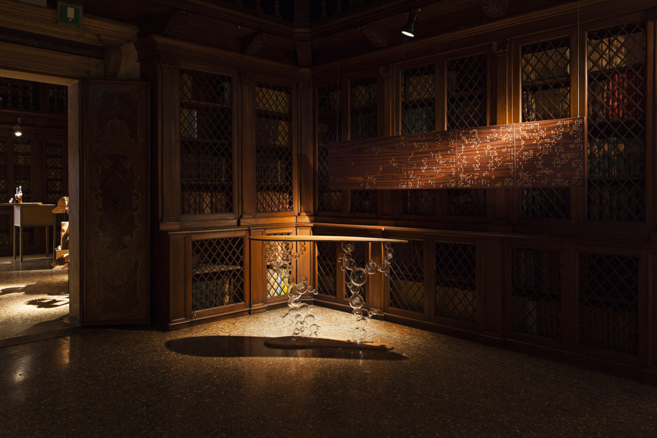 Wood obsession displayed a real material fascination that was in tune with the identity of the interiors of the exhibition venue itself. The walls of the piano nobile of Palazzo Loredan are coated with a wooden lattice that encloses its libraries. The strong personality of the setting spread to the exhibition itself, taking the undeniable presence of wood to its extreme by compiling works of several artists that work with the material in different mediums.