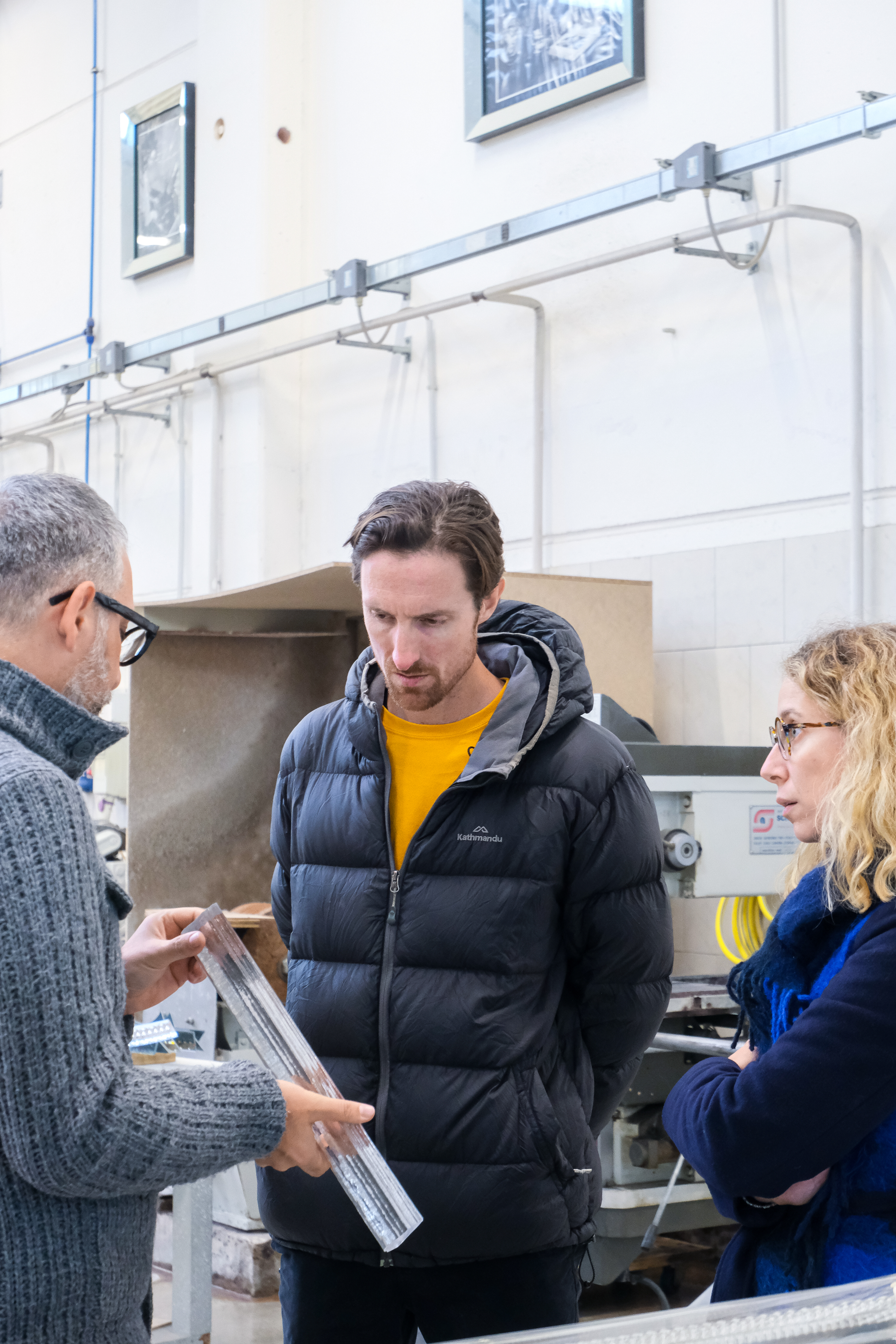 Curators Francesca Giubilei and Luca Berta with the designer.