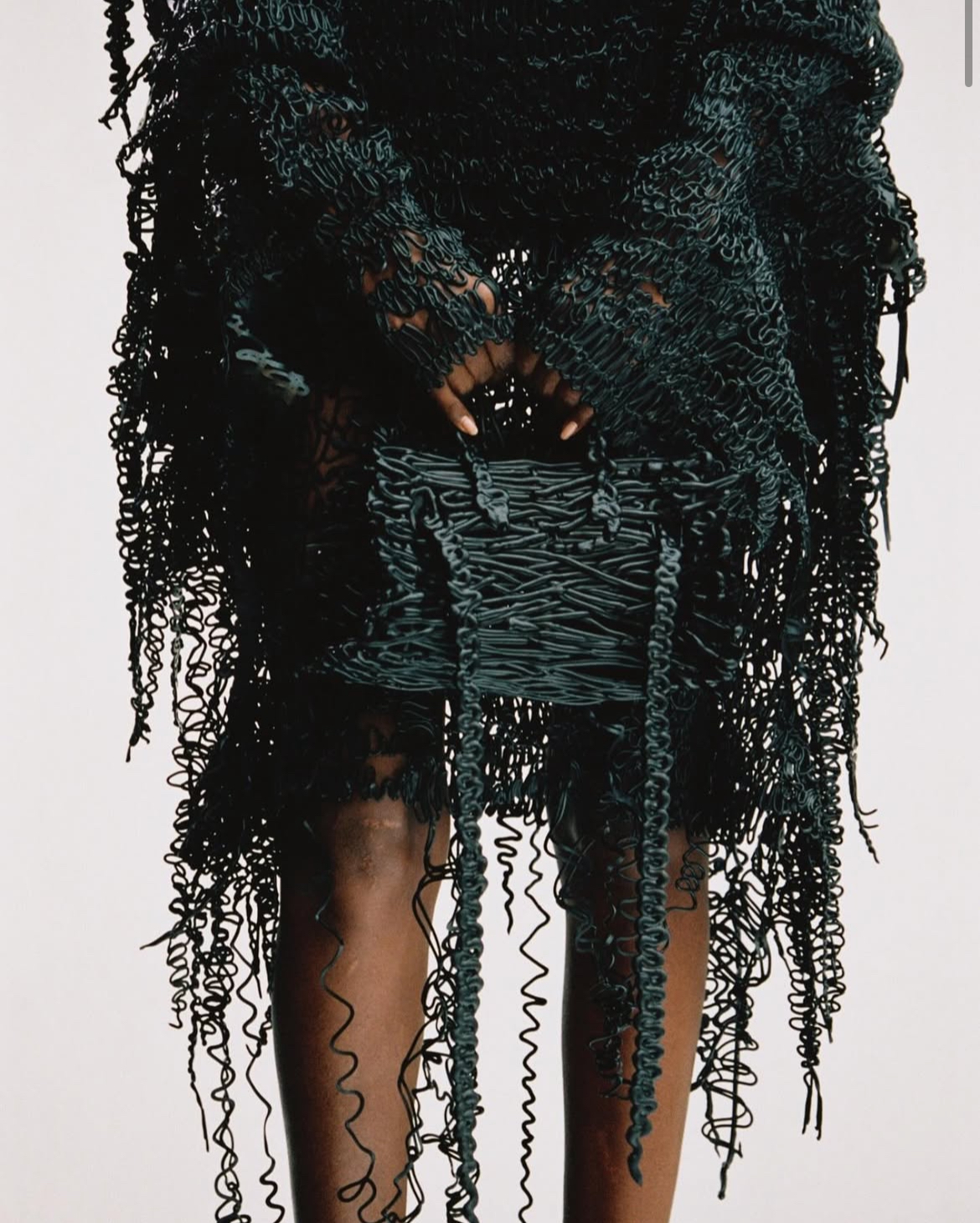 Back during her master's degree in fashion design, she came up with the idea of using liquid silicone to weave lace. Being a natural material, latex is biodegradable and working with its liquid form means a zero-waste production process — as well as it being more elastic, durable, and flexible.