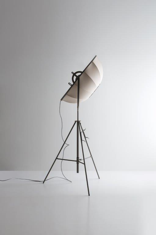 Fortuny's lighting experiments are made effective by the simplicity of his intuitions, which are poured into the Studio 1907 lamp, consisting of an aluminum lampshade and a steel support that can be tilted 360 °, specially made to direct the light, and a tripod like that of cameras, with an adjustable central axis.